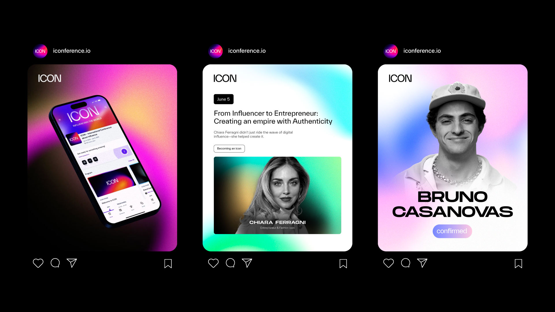 The ICON conference needed a complete identity system — from naming and concept to visuals, motion, and the entire event environment. My role was to define a creative direction that could live across digital and physical space, and create a brand that felt contemporary, expressive, and culturally relevant.